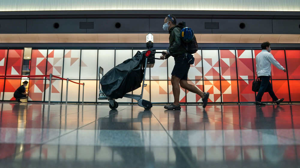 4月29日,戴口罩的乘客在日本东京羽田机场内行走。(新华社发,克里斯托弗·朱摄)