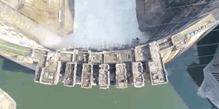 总台央视记者 宋菀:我们现在所在的位置是白鹤滩水电站的大坝上,这个大坝是混凝土双曲拱坝,整个坝高有289米。