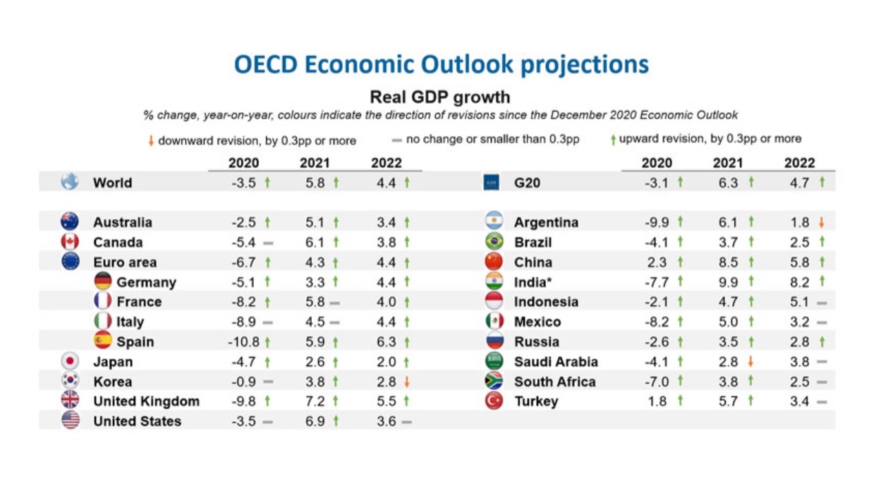总部位于法国巴黎的经济合作与发展组织(OECD)当地时间5月31日发布了最新一期全球经济展望报告。该报告预测,2021年全球经济将增长5.8%,2022年将增长4.4%。