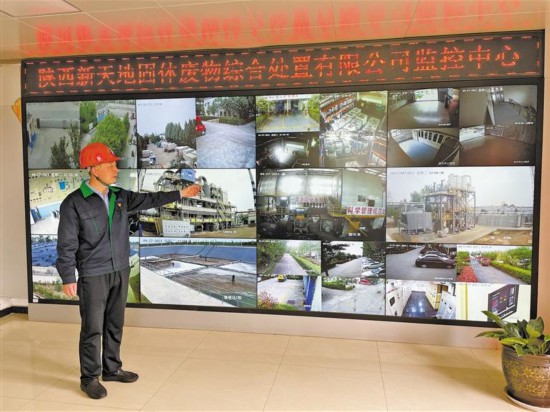 4月27日,在陕西新天地固体废物综合处置有限公司监控中心,公司总经理范增华介绍固废处置利用情况。