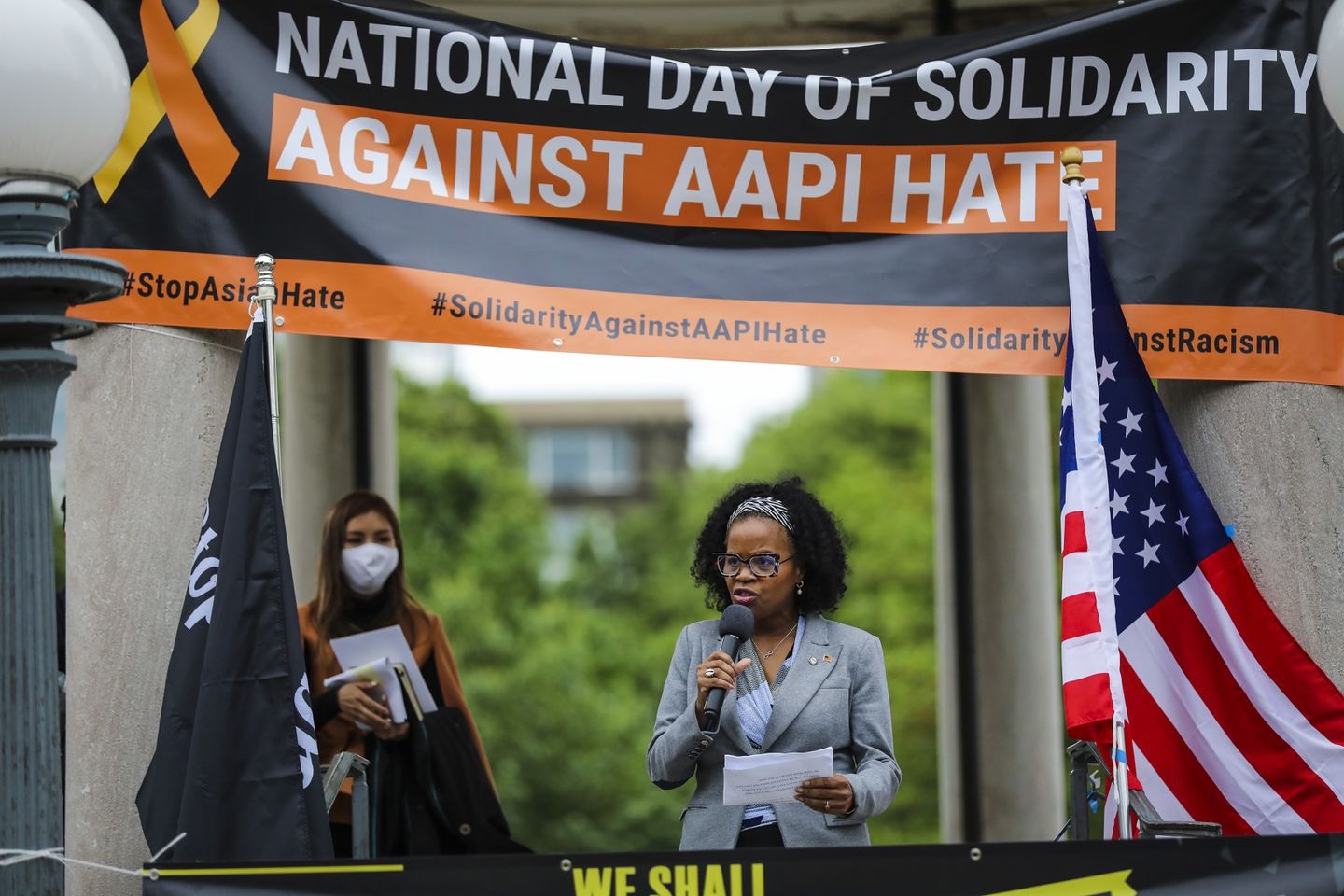 当地时间5月31日,包括美国首都华盛顿、加州洛杉矶市、纽约州纽约市和伊利诺伊州芝加哥市等全美20多个主要城市举行了反仇视亚裔集会活动,反对美国激增的针对亚裔暴力犯罪及仇恨事件。