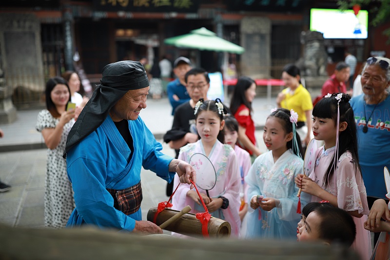 随着“打更人”的一声高吼,身着汉服的小萌娃们跟着阆中古城的“打更人”在古井边了解古代防火知识,还在消防员叔叔的带领下沿路“探宝”古城里的消防设施,并学习如何使用。