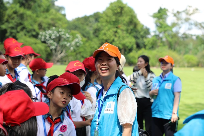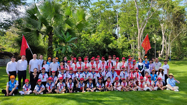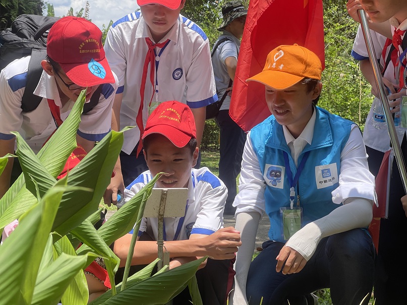 中国科学院西双版纳热带植物园中,学生代表在志愿者和工作人员引导下,全程参观植物园,增加对各类植物的认知,了解生物多样性。同学们对这里的植物“明星”也很感兴趣。比如通过抢救性保护和人工繁育方式获得的白旗兜兰、东南亚热带雨林的代表树种龙脑香科等植物,在讲解员和老师的讲解下,学生们对这些生物的认识更加深刻。