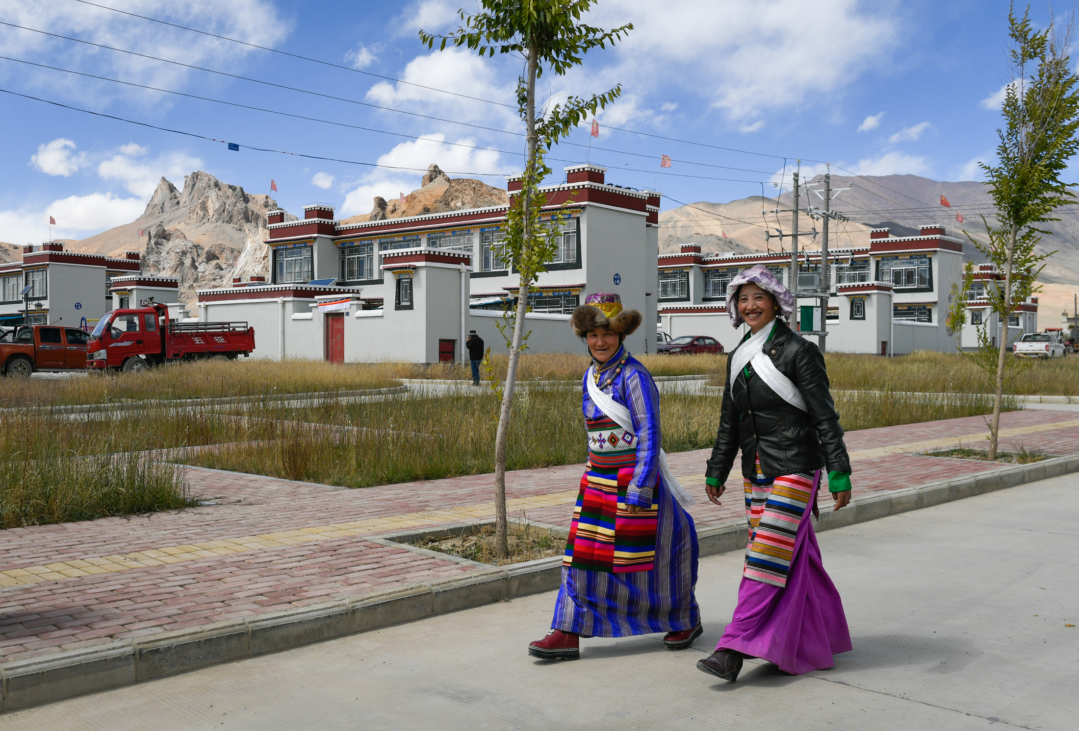 西藏阿里边境小康示范村,甲岗村村民走在村里的路上(2018年9月17日摄)。新华社发 (刘东君 摄)