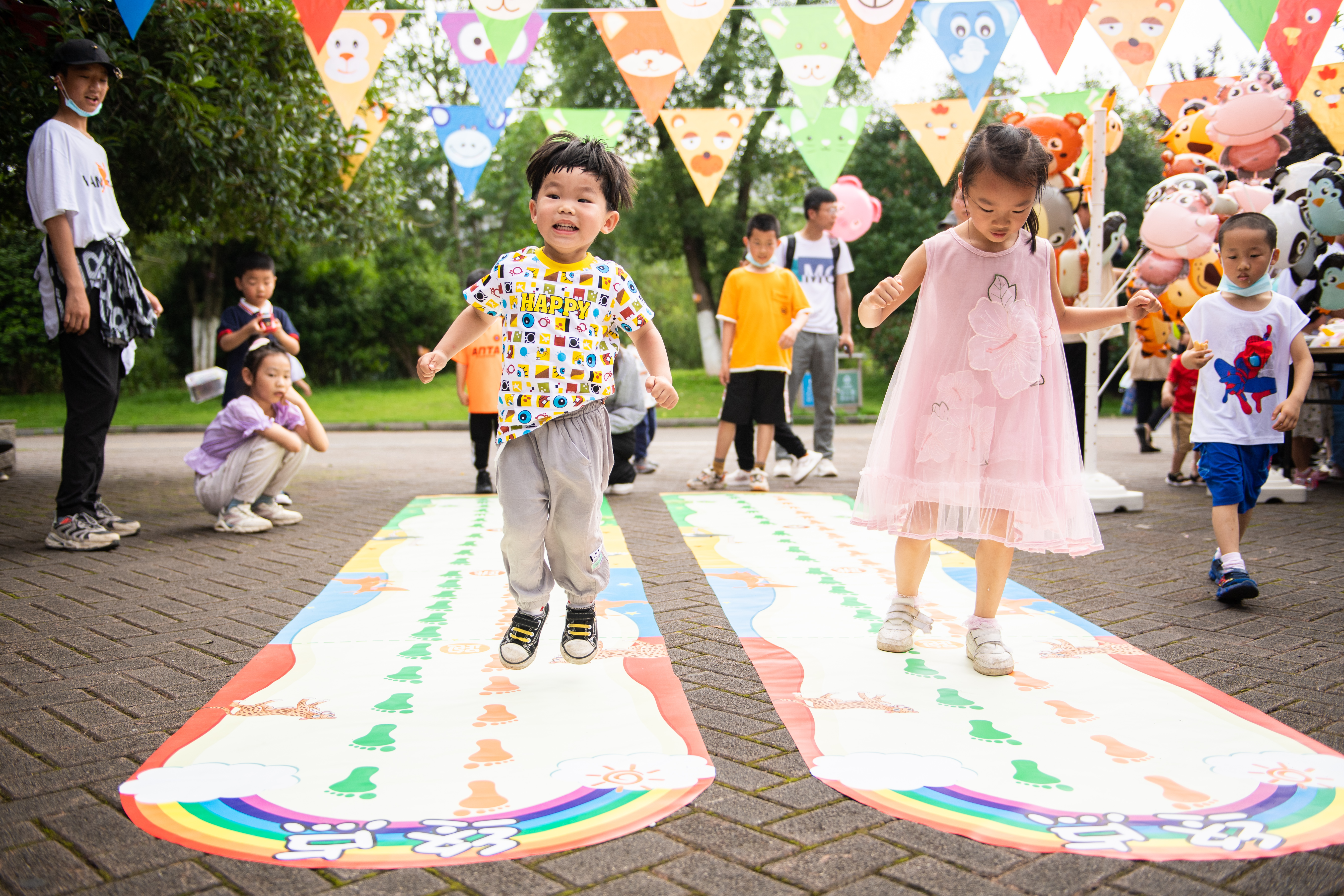 6月1日,在长沙生态动物园,小朋友参加游戏活动。