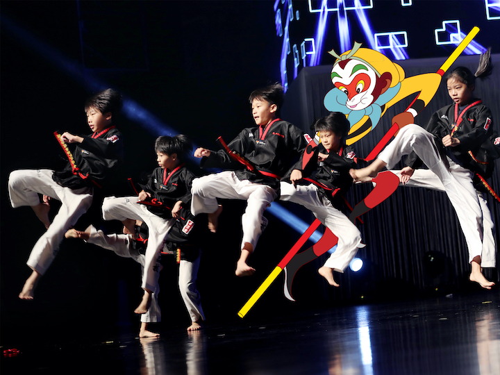 “习武”的少年。(新华社记者刘颖摄、记者王婧媛后期制作,上海美术电影制片厂授权)