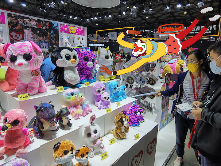 在上海举行的中国玩具展吸引采购商和消费者。(新华社记者吴宇摄、记者王婧媛后期制作,上海美术电影制片厂授权)