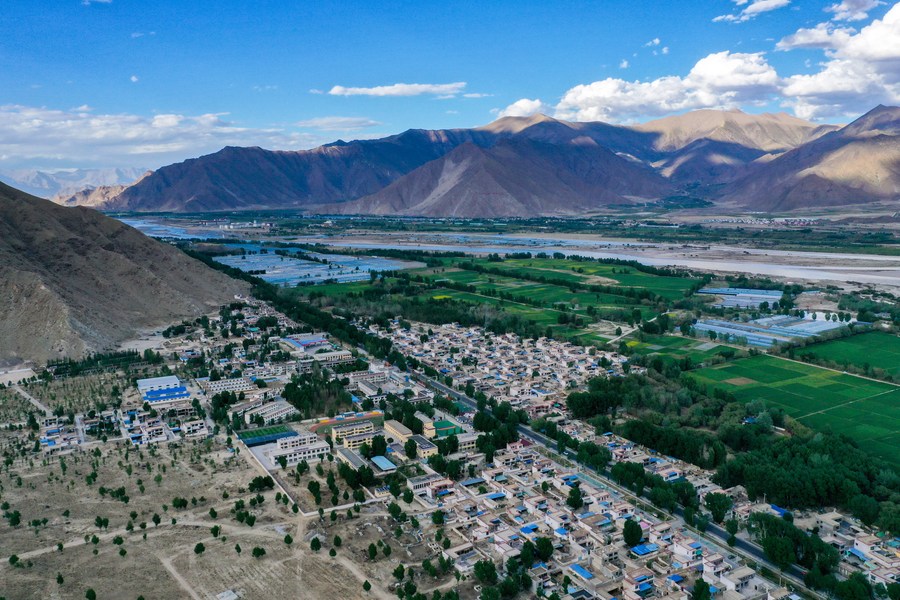 鸟瞰西藏自治区曲水县南木乡江村。新华社记者 田金文 摄