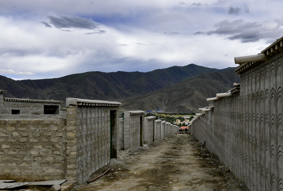 山南市泽当镇赞堂社区即将竣工的新牛圈。新华社记者 张汝锋 摄