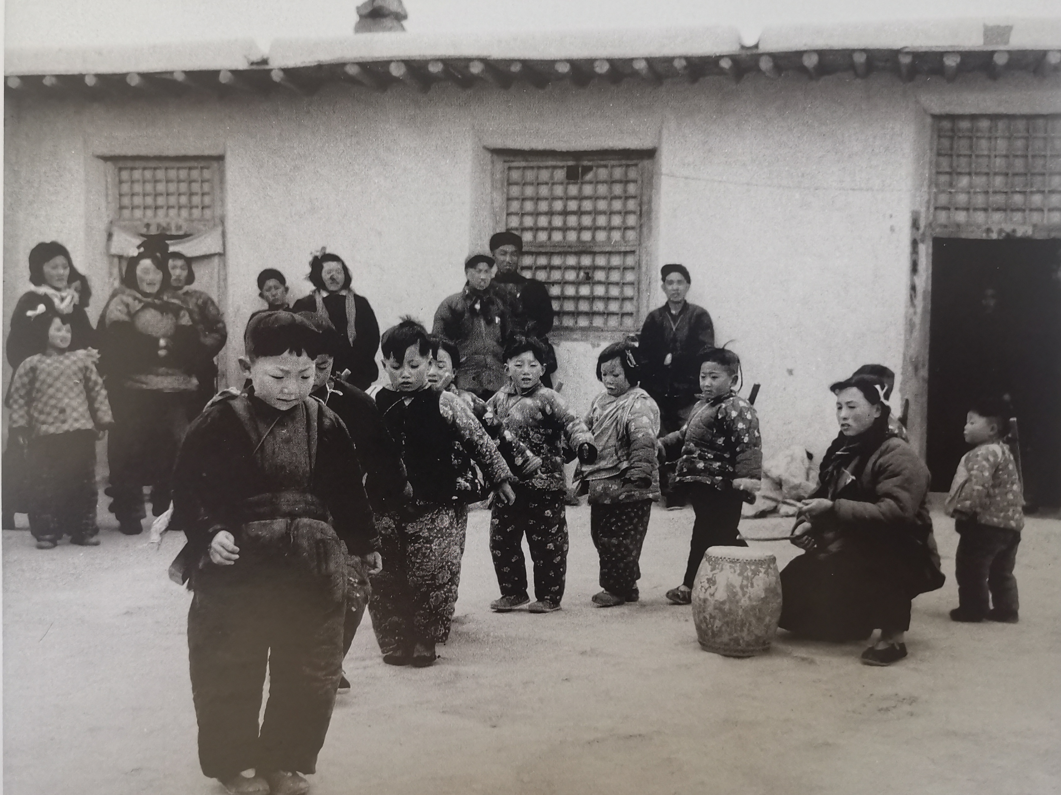“那时候村民在公社食堂吃‘大锅饭’,大人们要下地干活,孩子没人照看,我便成了托儿所的老师。说是老师,我大字不识一个,组织娃娃们到食堂吃饭,看着他们别乱跑就行。那两年流行跳秧歌,照片上我在敲鼓,娃娃们在跳秧歌。”陈秀莲笑着说,照片上的土坯房并非教室而是公社食堂所在地,那时托儿所没有专门的教室,娃娃们主要在室外疯跑玩耍。