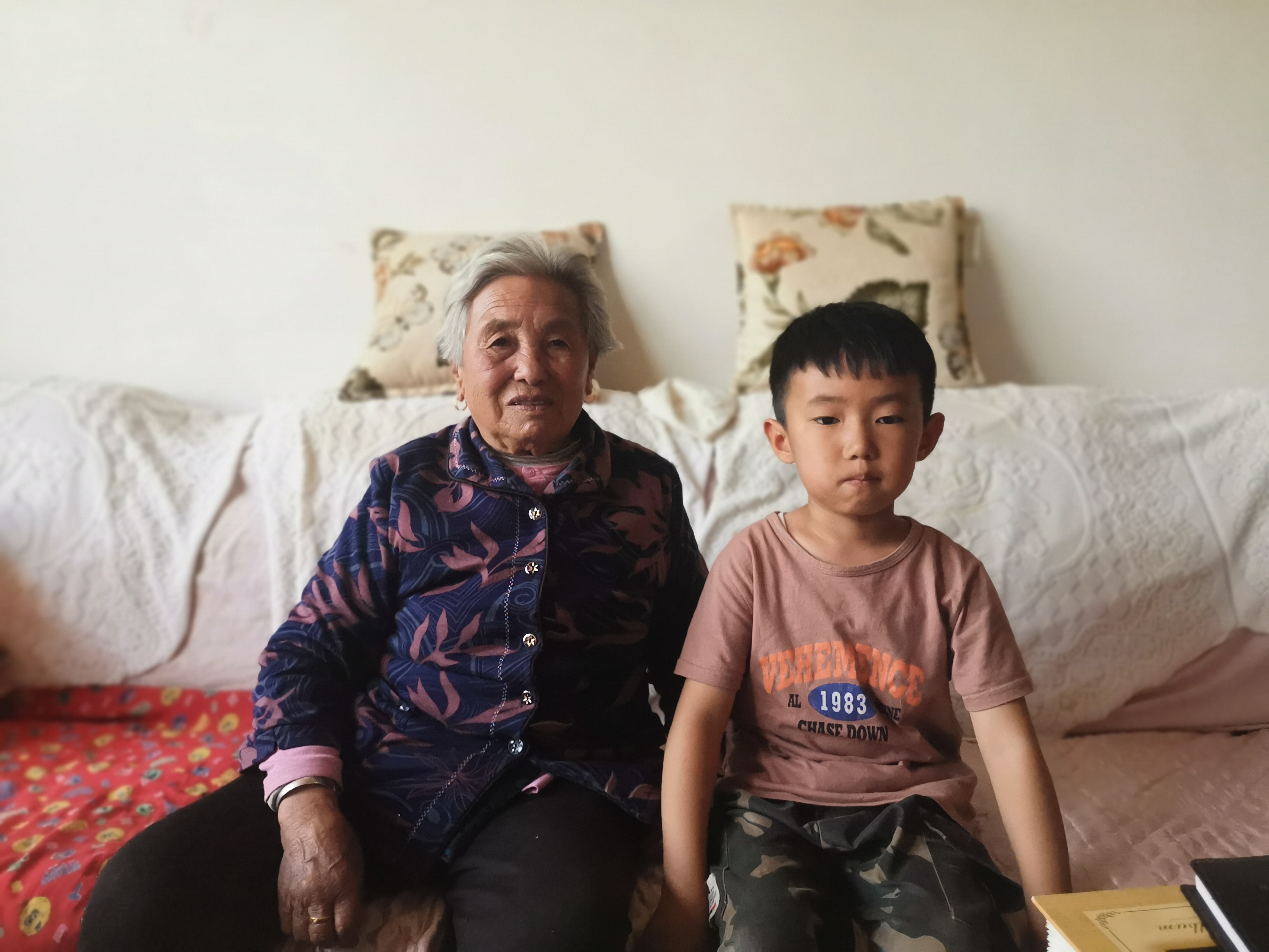 80岁的陈秀莲和正在幼儿园上大班的6岁重孙子。新华社记者 许晋豫 摄