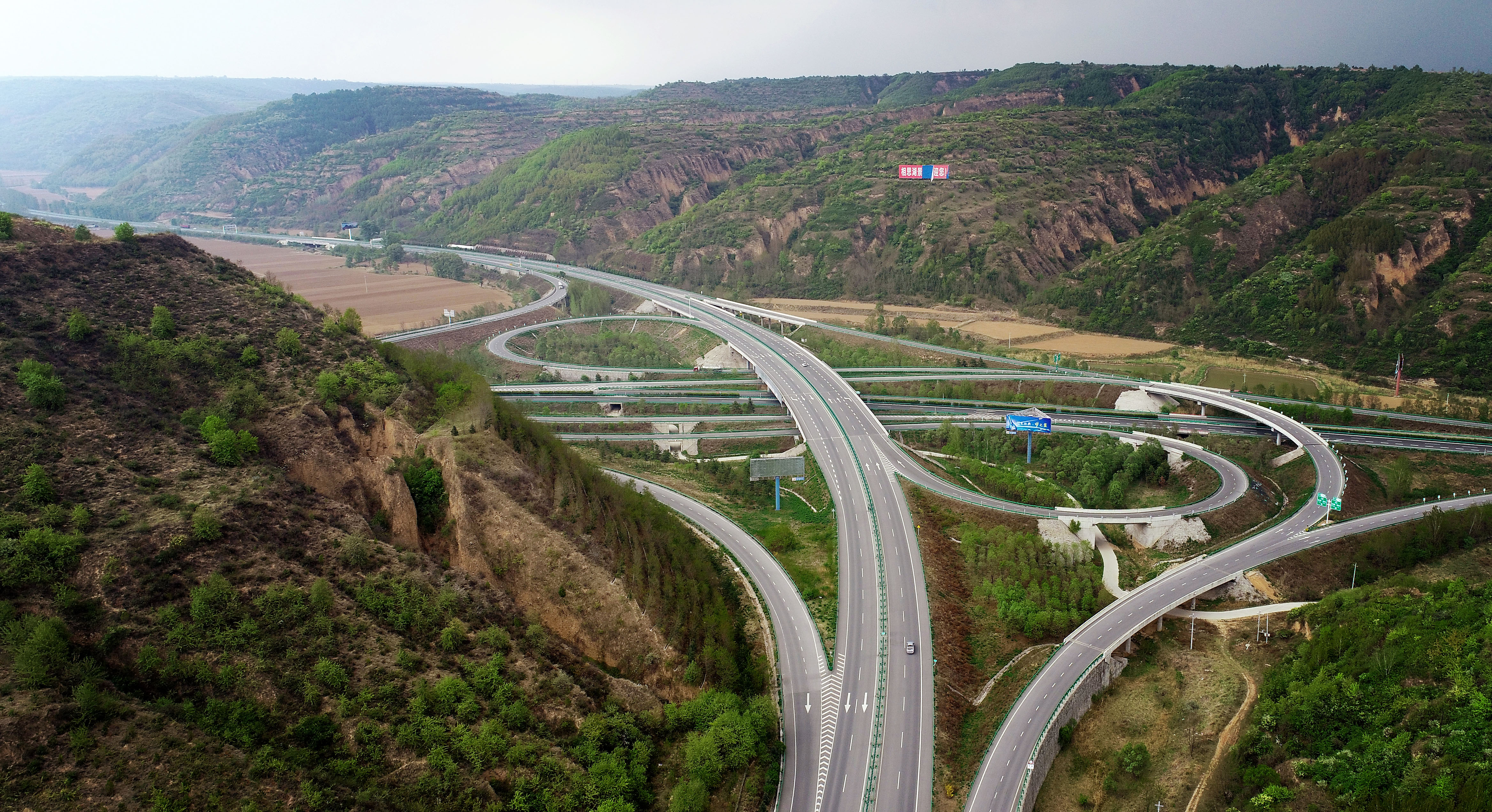 陕西延安洛川县境内包茂高速公路盘道。(新华社记者刘潇摄)