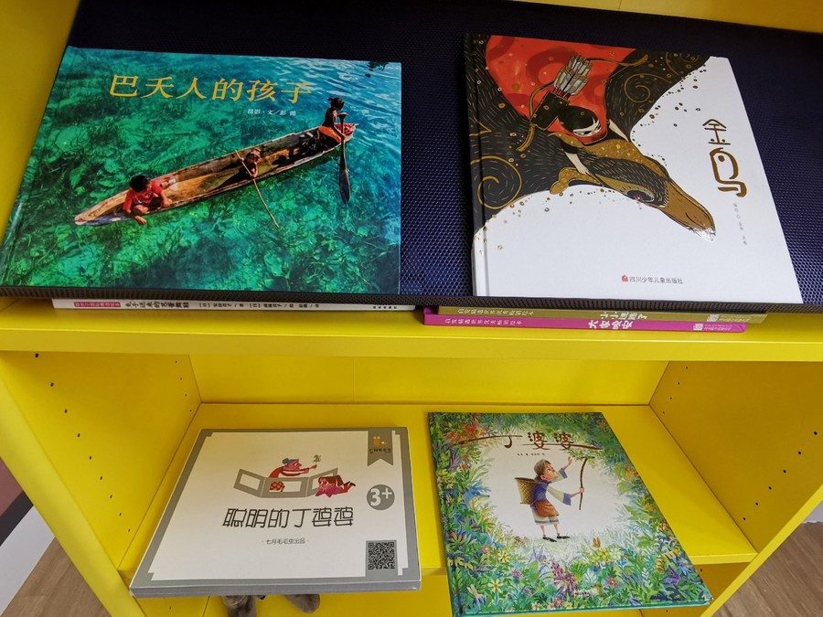 这是记者在四川天府新区内一家绘本馆内拍摄的一些比较受儿童欢迎的本土原创绘本。新华社记者 李倩薇 摄