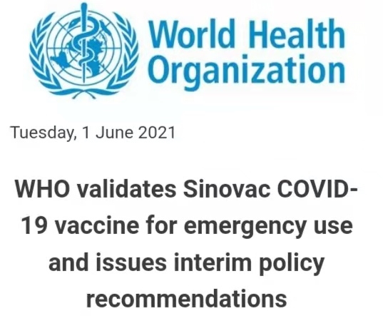 当地时间6月1日,世卫组织宣布将中国科兴新冠疫苗列入“紧急使用清单”。(总台记者 朱赫)
