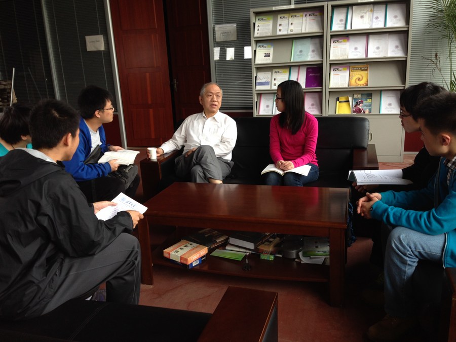 2014年,丘成桐在清华大学数学中心和学生交流。(清华供图)