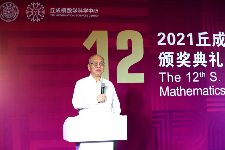 2021年5月30日,丘成桐在第十二届丘成桐大学生数学竞赛总决赛颁奖礼上致辞。(清华供图)