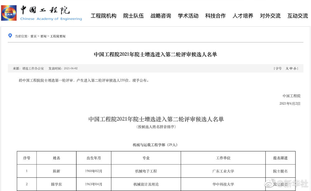 【235位候选人进入中国工程院院士增选第二轮评审】中国工程院2021年院士增选进入第二轮评审候选人名单6月2日公布。经中国工程院院士增选第一轮评审,产生进入第二轮评审候选人235位。详情>>>