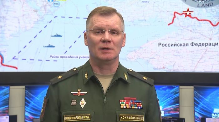 △俄罗斯国防部发言人科纳申科夫发表视频声明 截图