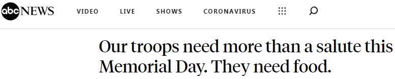 “在这个阵亡将士纪念日,我们的军队需要的不只是一个敬礼。他们需要食物。”