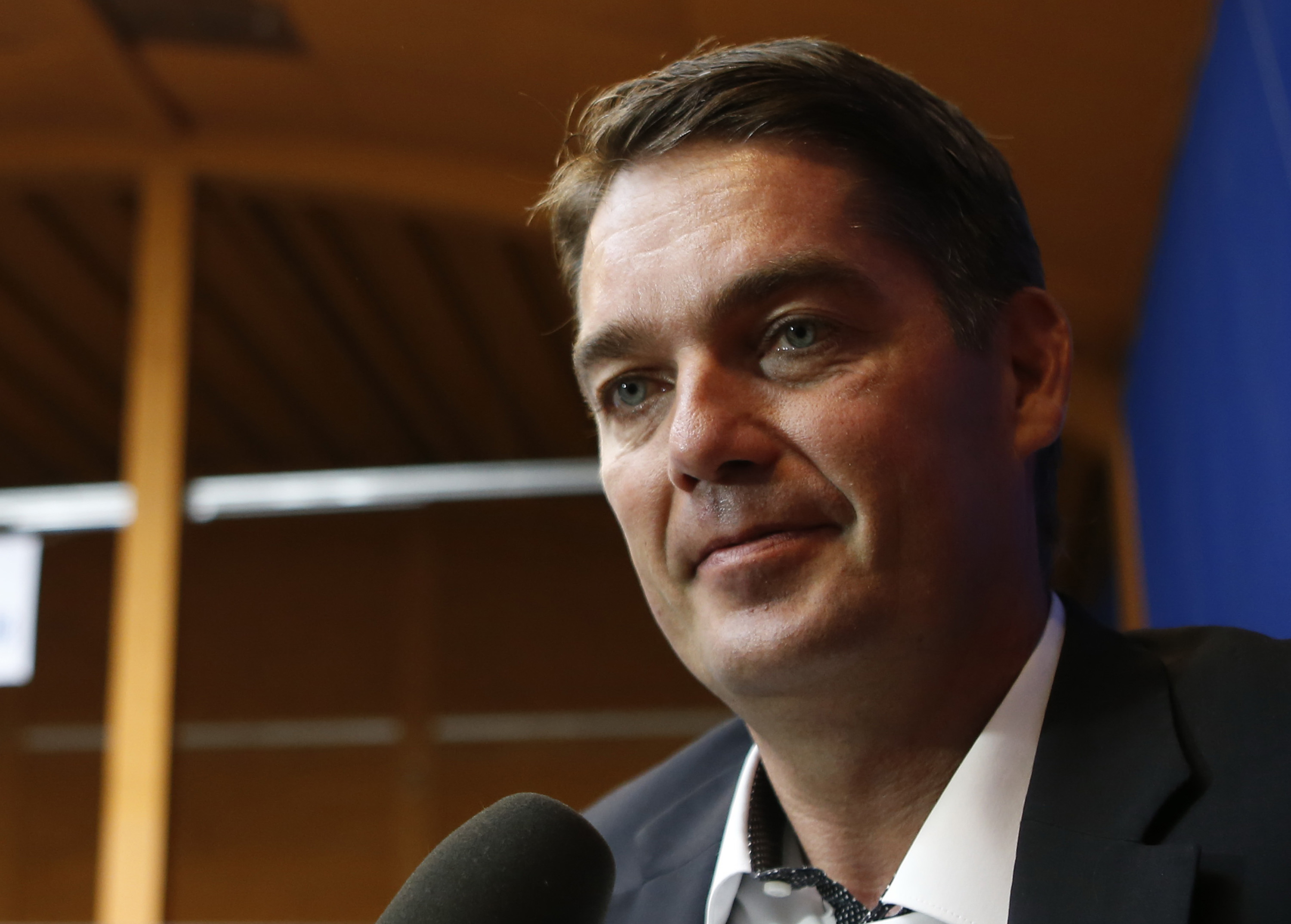 资料图:世界羽联主席拉尔森接受记者采访。新华社记者王丽莉摄