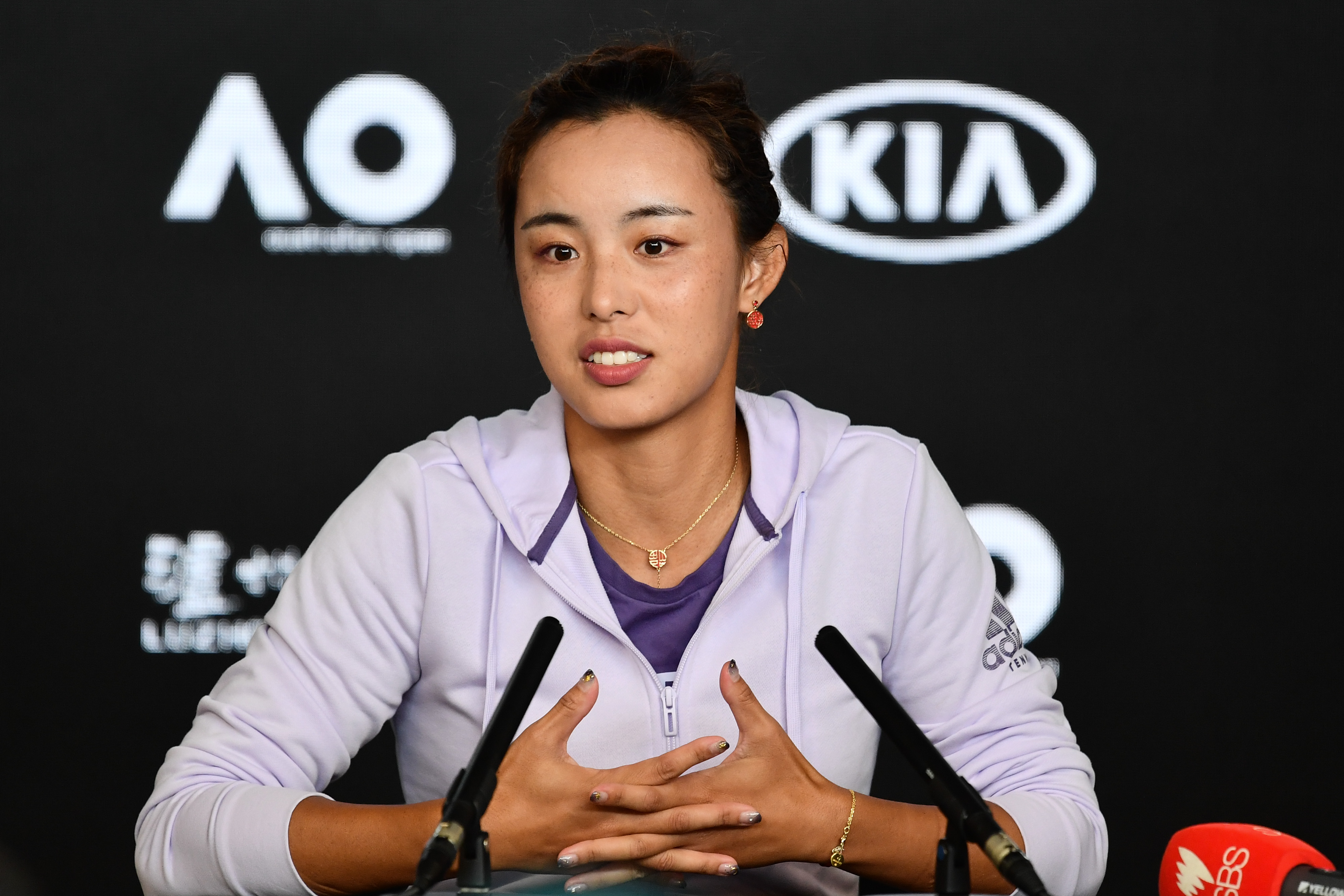 资料图:王蔷在赛后发布会上。新华社发(白雪摄)