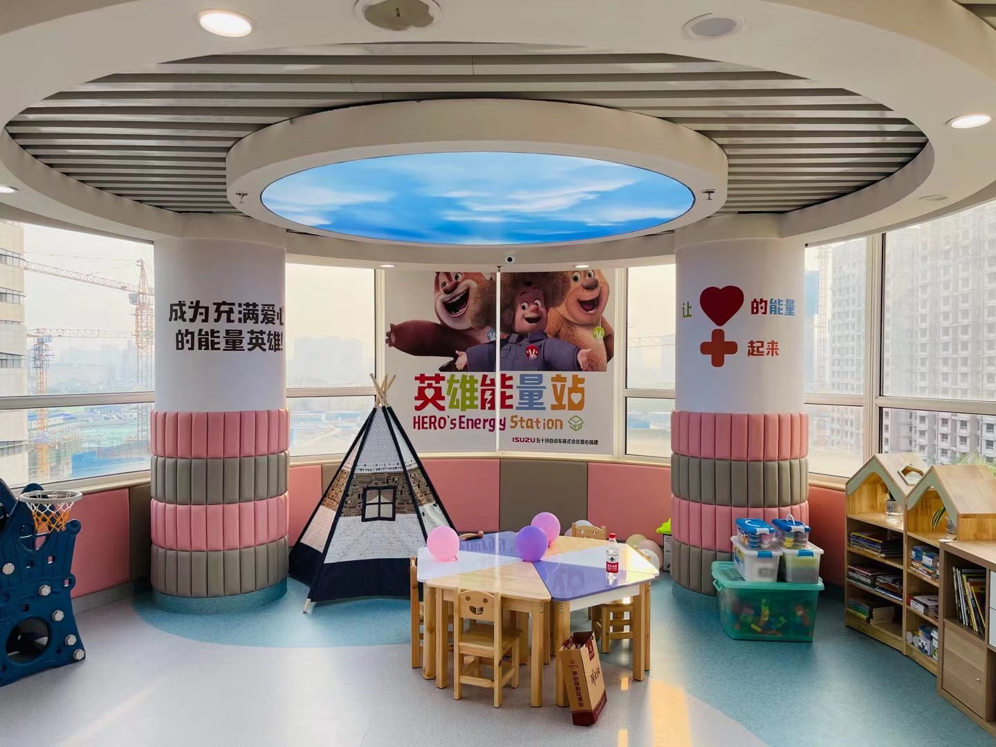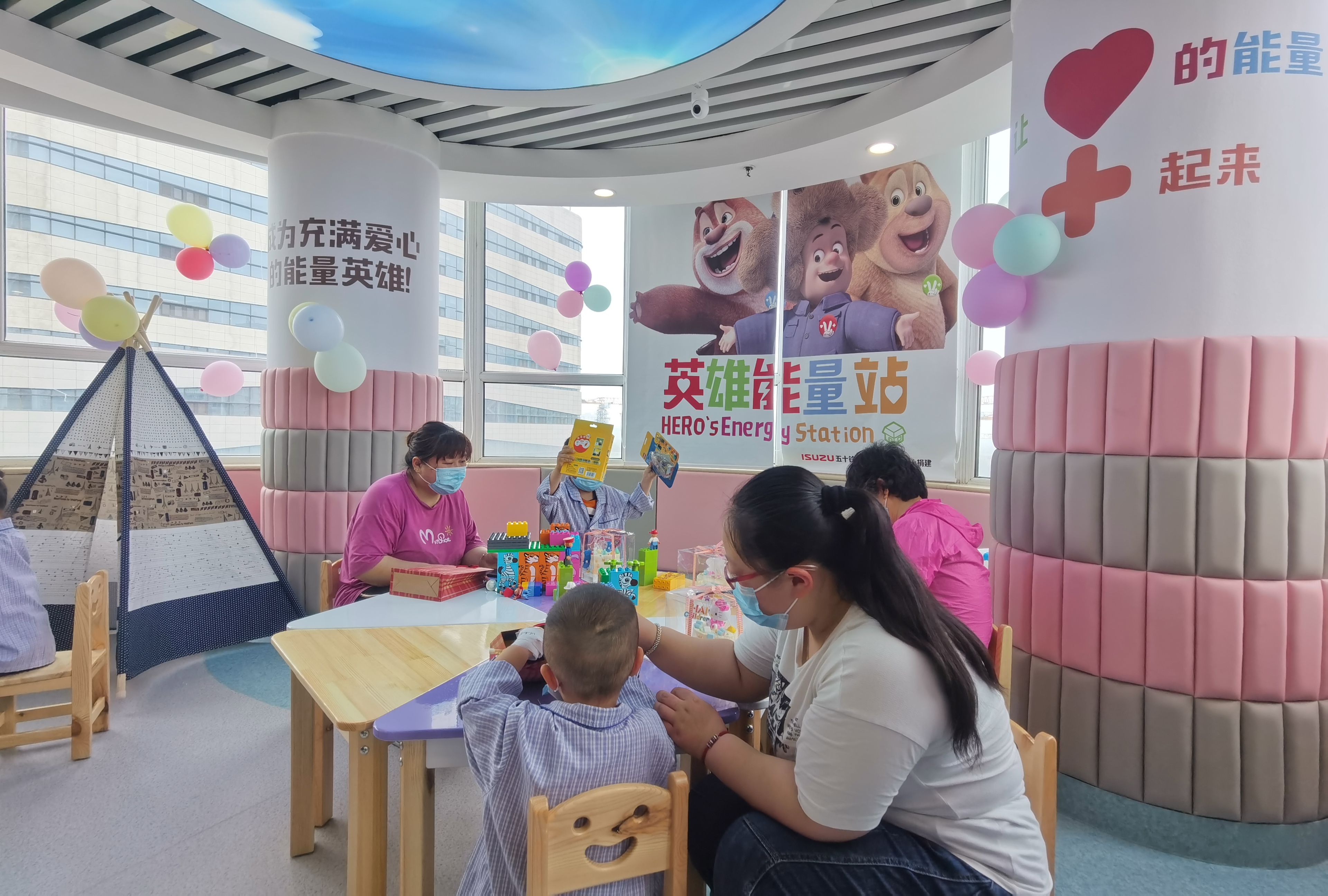 中国红十字基金会秘书长助理郭阳介绍,“英雄能量站”依托山东大学第二医院小儿外科的优势资源,通过改造阳光病房,为因长期住院脱离社会的儿童提供教育、游戏和心理辅导等关爱活动,为有特殊困难的孩子及其家属提供帮扶支持。“我们希望通过为患儿提供人文关怀,减轻患儿和家长的心理压力。”