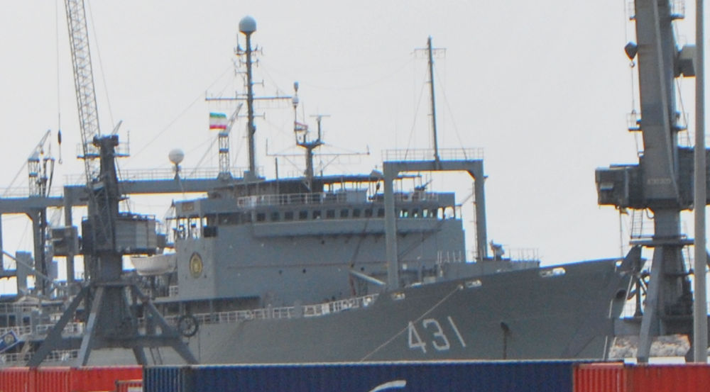 2011年2月24日,两艘伊朗军舰“哈尔克”号(431)补给支援舰和“阿勒万德”号巡逻护卫舰抵达叙利亚北部拉塔基亚港。(新华社发)