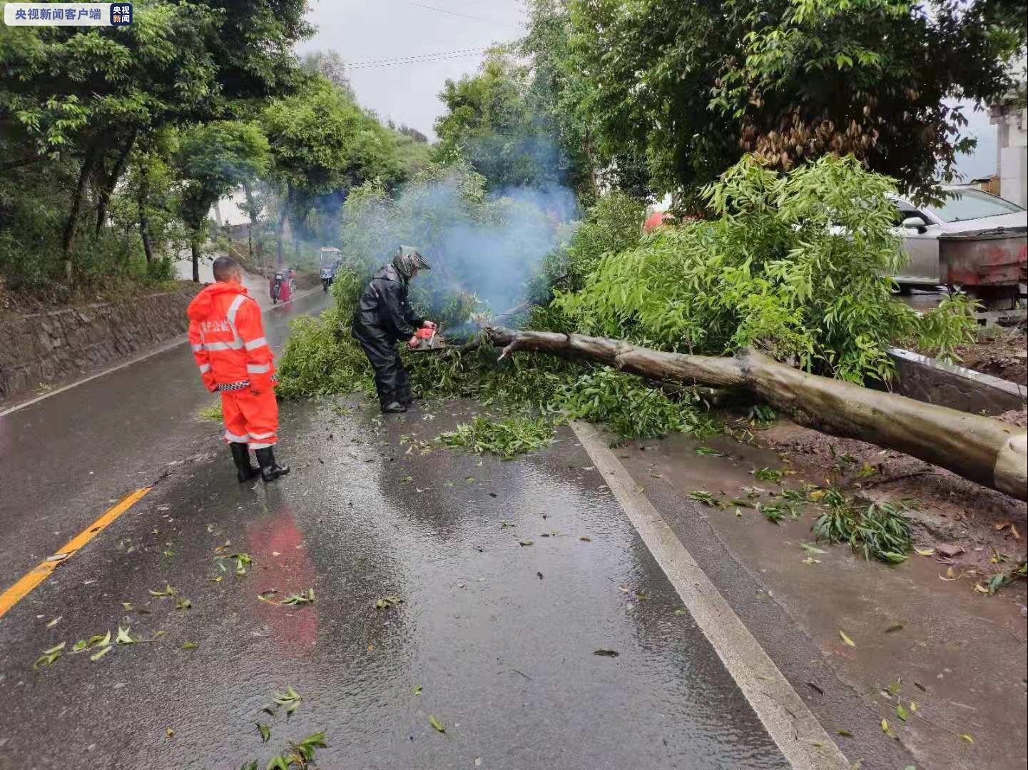 从2日夜间开始到3日上午,重庆部分区县遭遇了大雨和暴雨天气,随之而来的大风甚至导致重庆渝北区内的210国道沿线乡镇,如木耳、兴隆、茨竹等路段有10多处行道树倒伏。断落的树干树枝散落一地,导致路面通行严重受阻,过往车辆无法通行。对此,从今天(3日)早上7点开始,渝北公路事务中心积极组织抢险工作人员奔赴各事故现场,采用链锯作业、人工操作的方式,对断木和残枝进行分割拖移。目前抢修清理工作基本结束,受阻道路通行恢复正常。