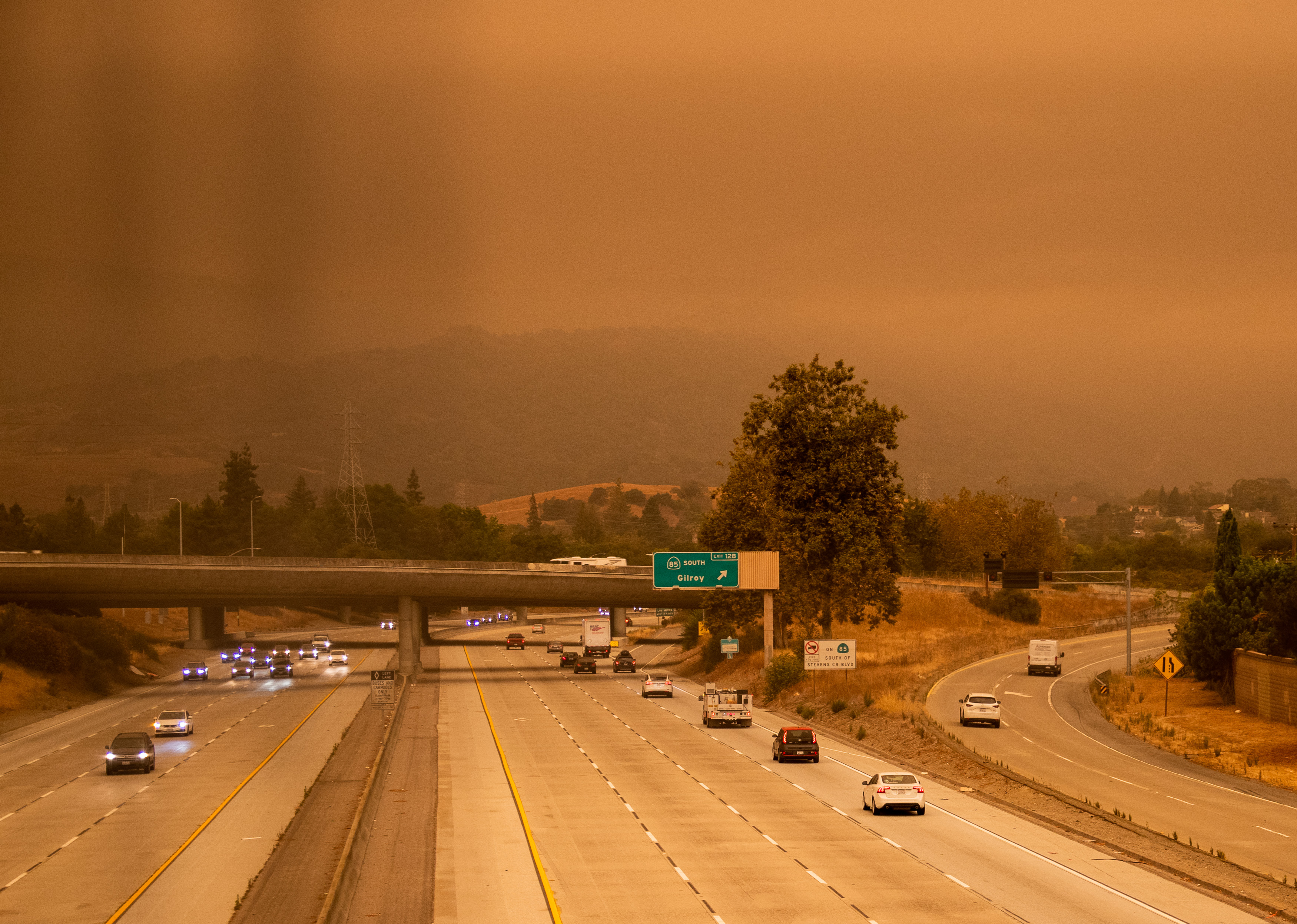 2020年9月9日午后拍摄的照片显示,美国加州硅谷地区的天空被烟尘笼罩。(新华社发,董旭东摄)