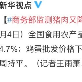 #猪肉大葱降价#【#商务部监测猪肉又降价了#】据商务部监测,上周(5月24日至30日)全国食用农产品市场价格比前一周下降0.8%,肉类价格总体下降,其中猪肉批发价格每公斤24.71元,下降3.3%;羊肉批发价格下降0.3%;牛肉批发价格上涨0.1%。此外,30种蔬菜平均批发价格比前一周下降0.2%,其中大葱批发价格下降10%。猪肉大葱降价你感受到了吗?(记者王雨萧、于佳欣)