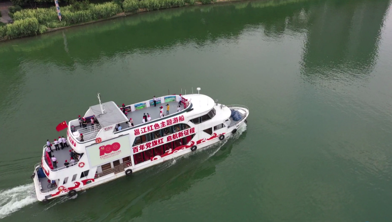 这艘邕江红色主题游船是南宁市利用邕江游船等特色旅游资源,创新打造的展示党史和地方发展史的移动学习新阵地。邕江红色主题游船以“重温入党誓词、聆听红色故事、观看红色展览、上好党史党课、参与党史问答”等形式,让党员以实际行动学习党史,感受“动起来”的红色文化。