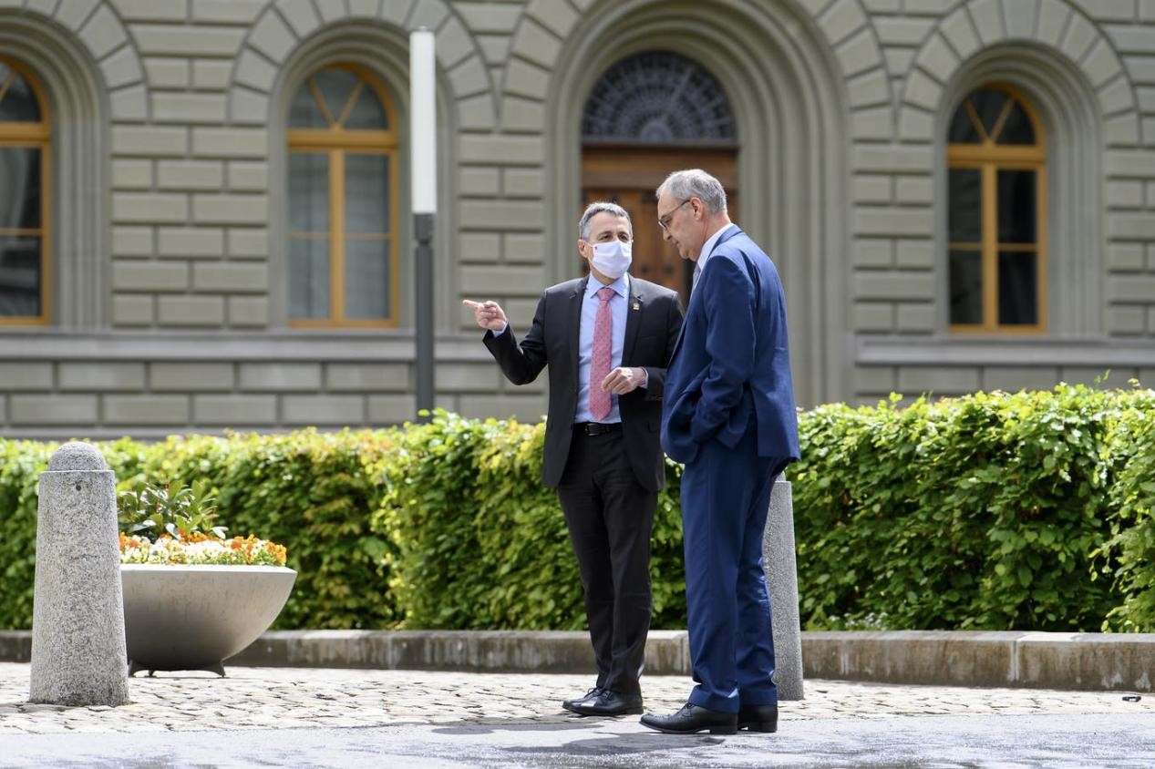 △瑞士联邦主席帕默林(右)和瑞士联邦副主席兼外长卡西斯(图片来源:《新苏黎世报》)