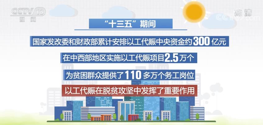 “十三五”期间,国家发展改革委和财政部累计安排以工代赈中央资金约300亿元,在中西部地区实施以工代赈项目2.5万个,为贫困群众提供了110多万个务工岗位,以工代赈在脱贫攻坚中发挥了重要作用。