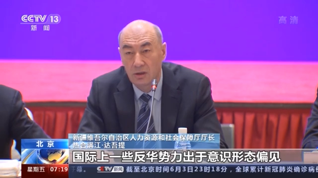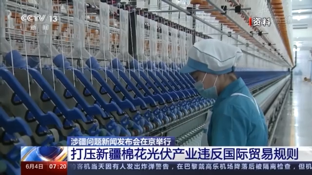 一段时间以来,一些反华势力以所谓的“强迫劳动”为借口,对新疆进行攻击和抹黑。新疆维吾尔自治区昨天(6月3日)在北京举行第十场涉疆问题新闻发布会,邀请新疆相关部门负责人、纺织等行业负责人、专家学者和企业员工,与中外媒体面对面交流,进一步澄清事实、讲明真相,揭露西方反华势力的谎言谬论。