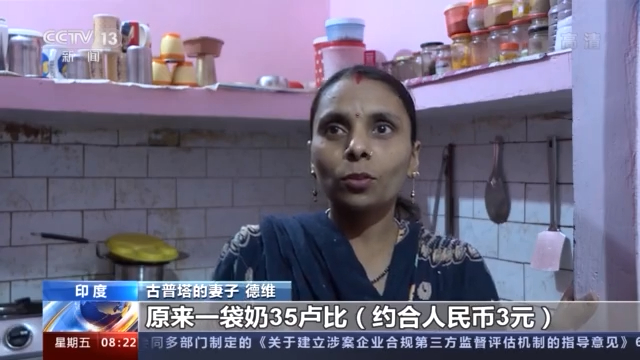古普塔的妻子 德维:原来一袋奶35卢比(约合人民币3元)现在涨到55到60卢比了(约合人民币4.8元到5.3元)。蔬菜和水果的价格也在飞涨,所以我们只能一分钱掰成两半花。