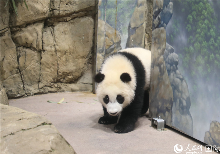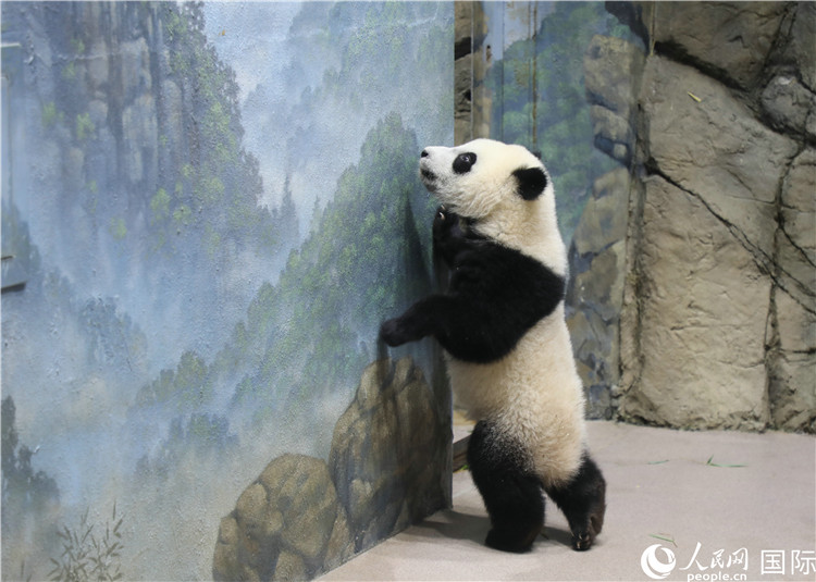 旅美大熊猫幼崽”小奇迹”现在各方面发育良好,身体健壮。 人民网记者 李志伟摄