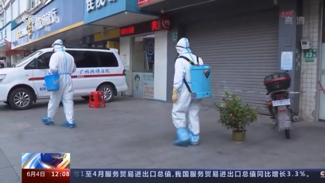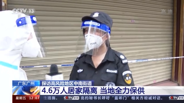 总台记者 魏星:现在是6月3日的下午,我所在的位置是荔湾区中南街道海南社区,这里在6月1日被列为高风险区域,现在整个地方已经实行了封闭式管理,所有人员只进不出。在社区外围,设置了一个执勤岗点。所有车辆要进入,先要经过消杀,在现场还有安保人员、医务人员等维持秩序。社区内所有的店铺已经关闭,在每一个路口都设有安保人员维持秩序。
