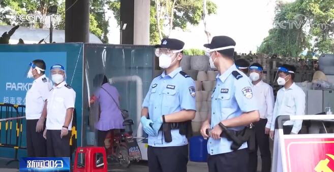 总台记者 魏星:现在是6月3日的下午,我所在的位置是荔湾区中南街道海南社区,这里在6月1日列列为高风险区域,现在整个地方已经实行了封闭式管理,所有现场的人员只进不出。在社区的外围,设置了一个这样的执勤岗点。我们看到,所有的车辆要进去先要经过消杀,在现场还有安保人员、医务人员等维持秩序。在里面我们看到,所有的店铺已经关闭,在每一个路口都设有安保人员维持秩序。