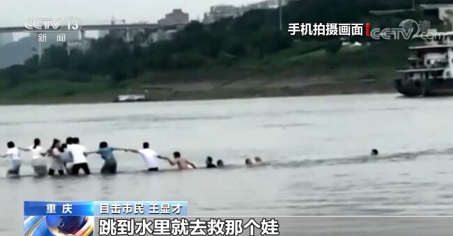 从这段手机拍摄的视频中可以看到,当时参与救援的人手拉手站成一排,一线延伸到孩子的落水点,人墙的最外沿就是王红旭。最先被救起的是一个女孩。