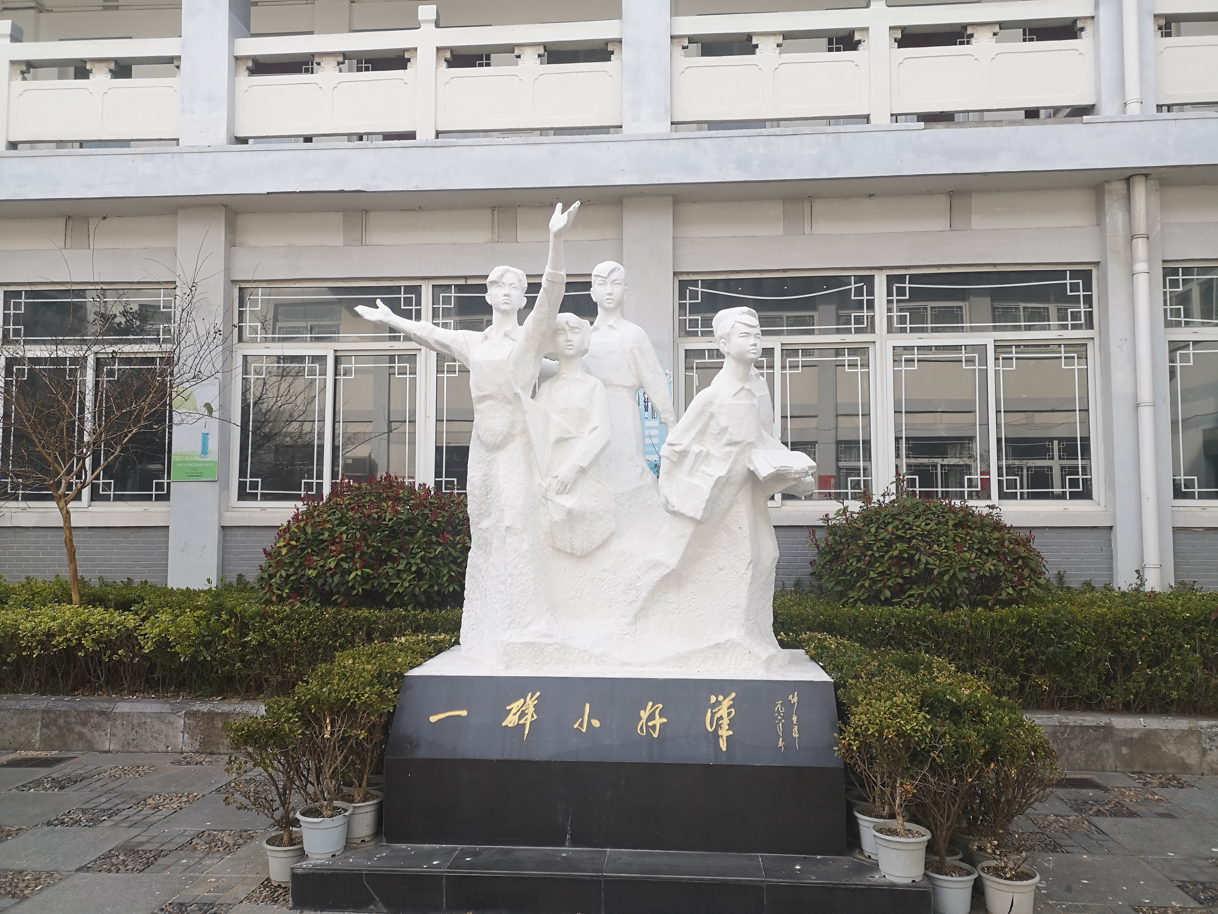 ↑淮安市新安小学内“一群小好汉”群雕(2021年3月10日摄)。新华每日电讯记者朱筱摄