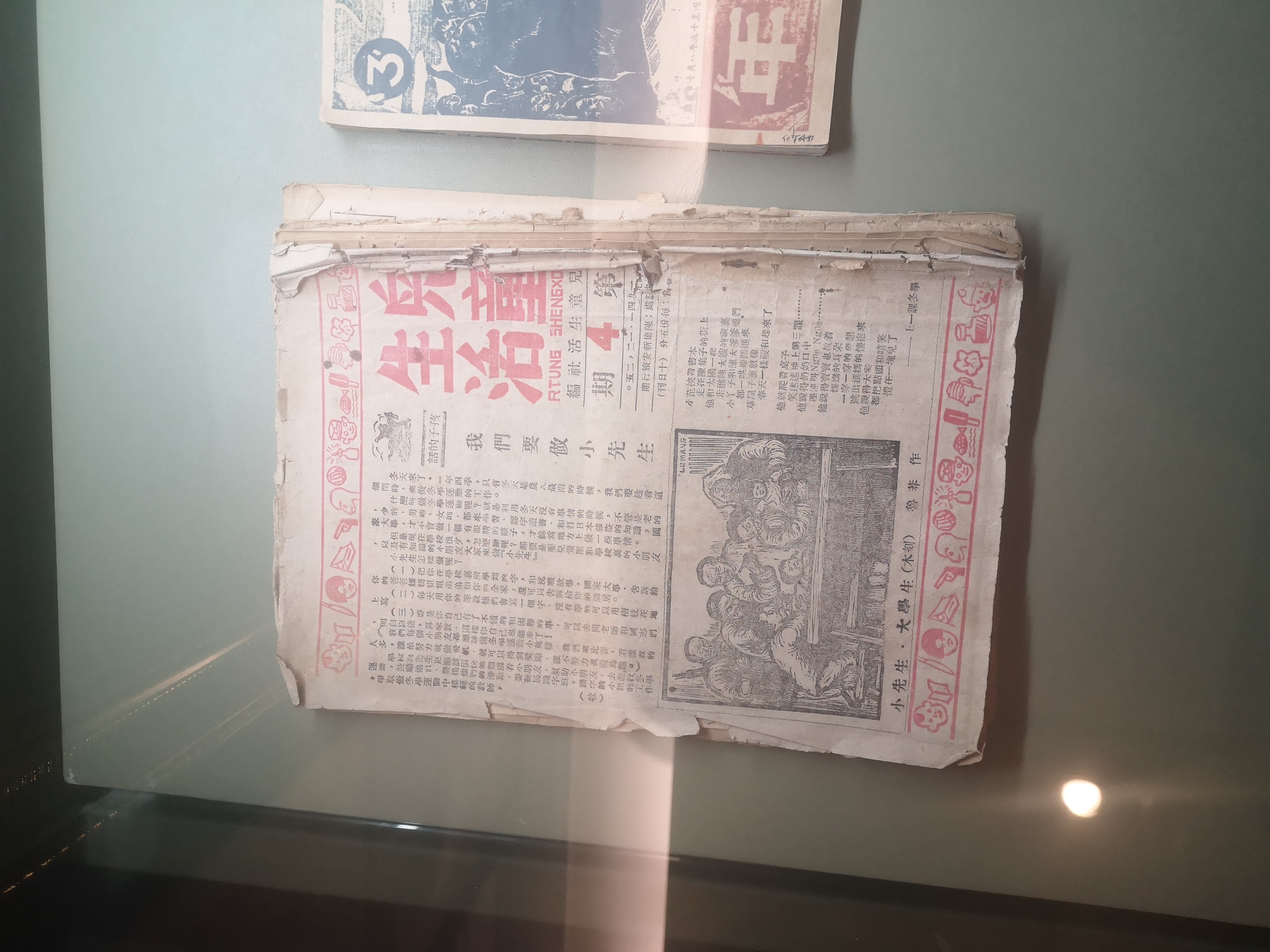 ↑淮安市新安旅行团历史纪念馆内展出的《儿童生活》(2021年3月10日摄)。新华每日电讯记者朱筱摄