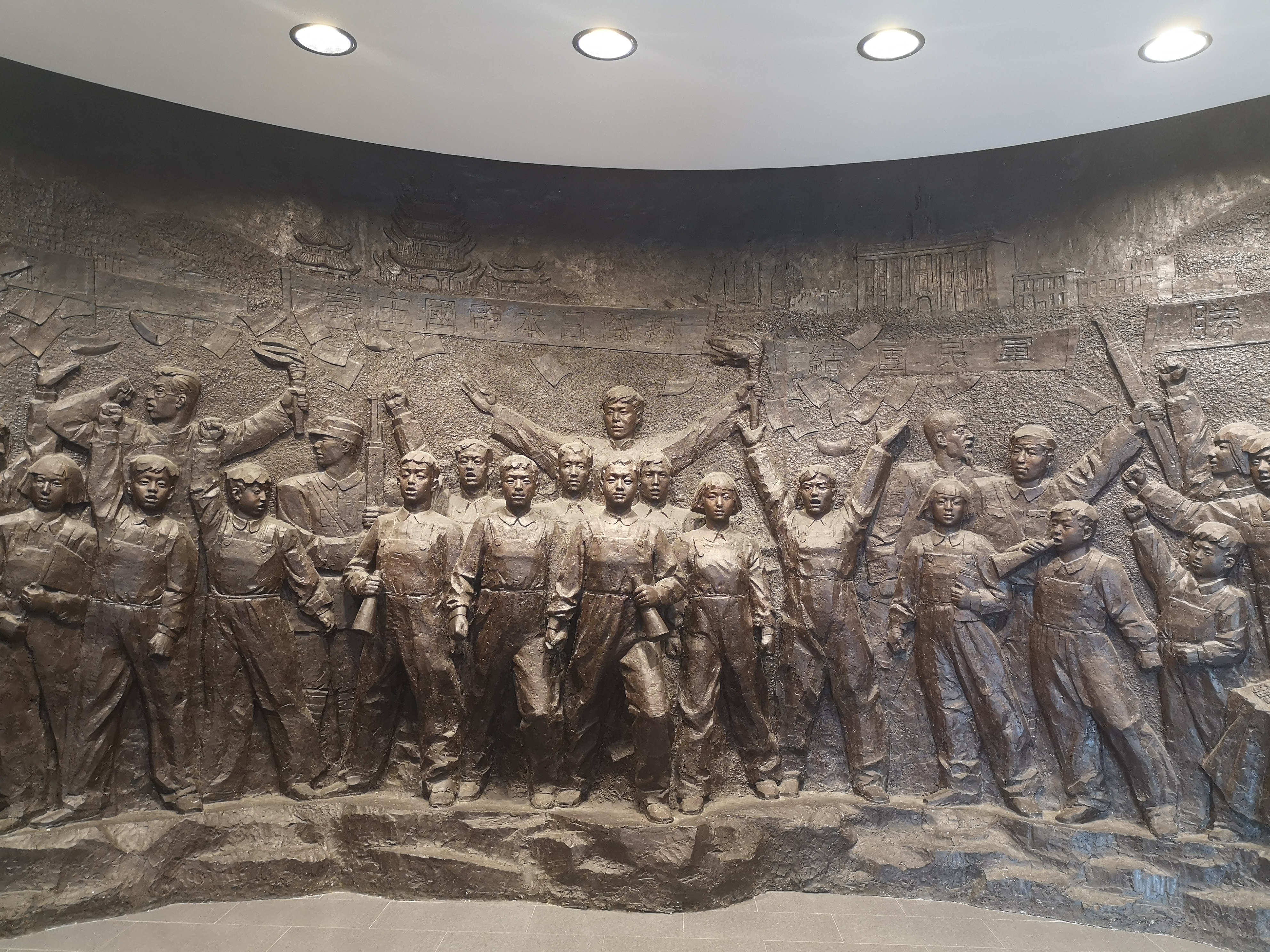 ↑淮安市新安旅行团历史纪念馆内的雕塑(2021年3月10日摄)。新华每日电讯记者朱筱摄