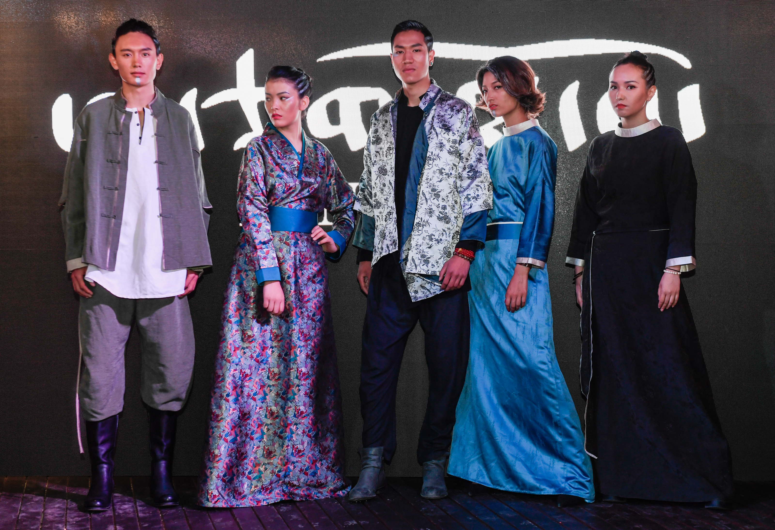 西藏时尚民族服饰品牌阿佳娜姆发布的春夏新品时装(2018年6月10日摄)。新华社发刘东君摄