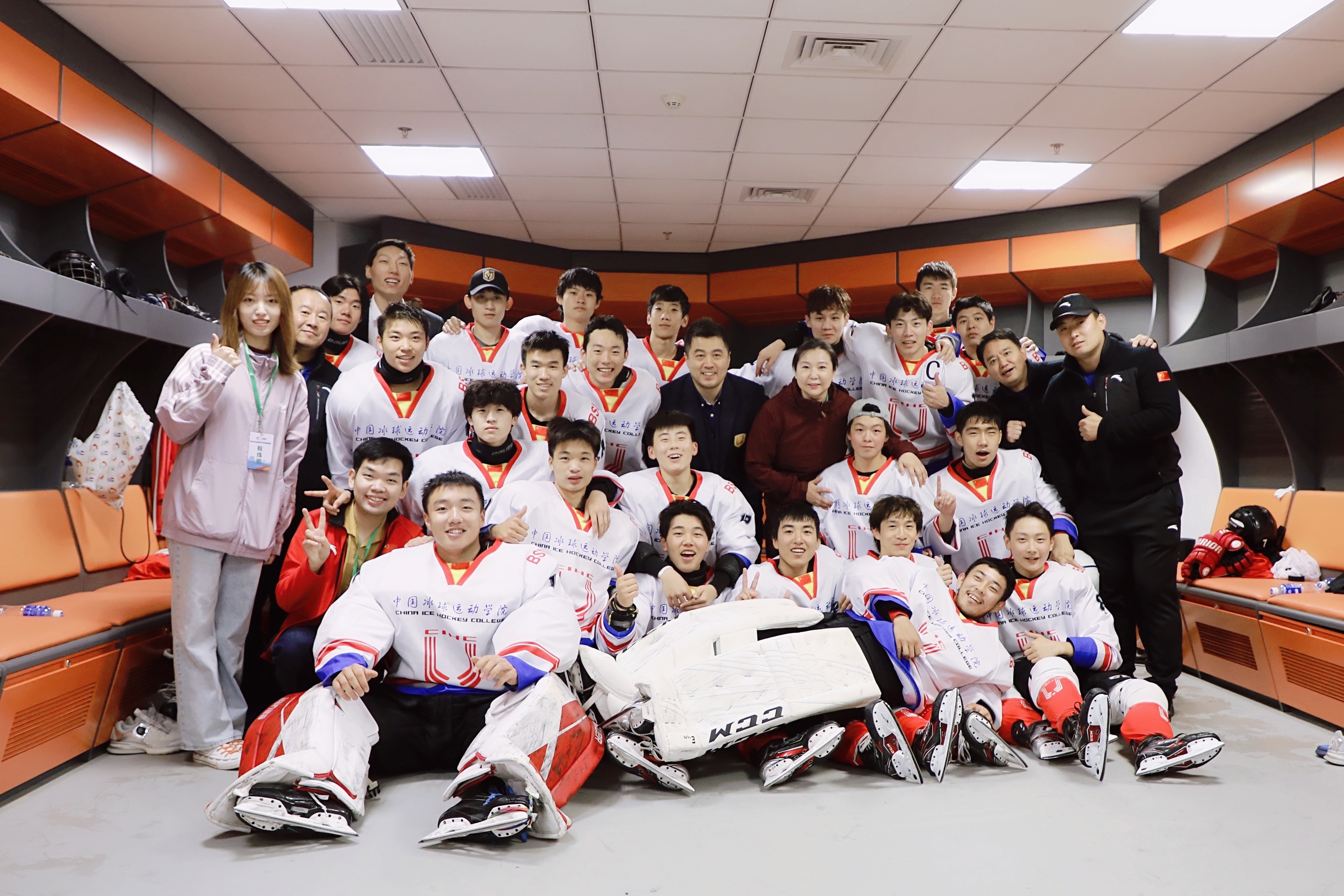 北京体育大学中国冰球运动学院成立于2018年,目前学院一共有50余名学生,学院招收的并不是本科生,而是14-18岁年龄段的学生,学生们文化课与冰球训练兼顾,这也是球队第一次成建制地参加全国性成人组的比赛。