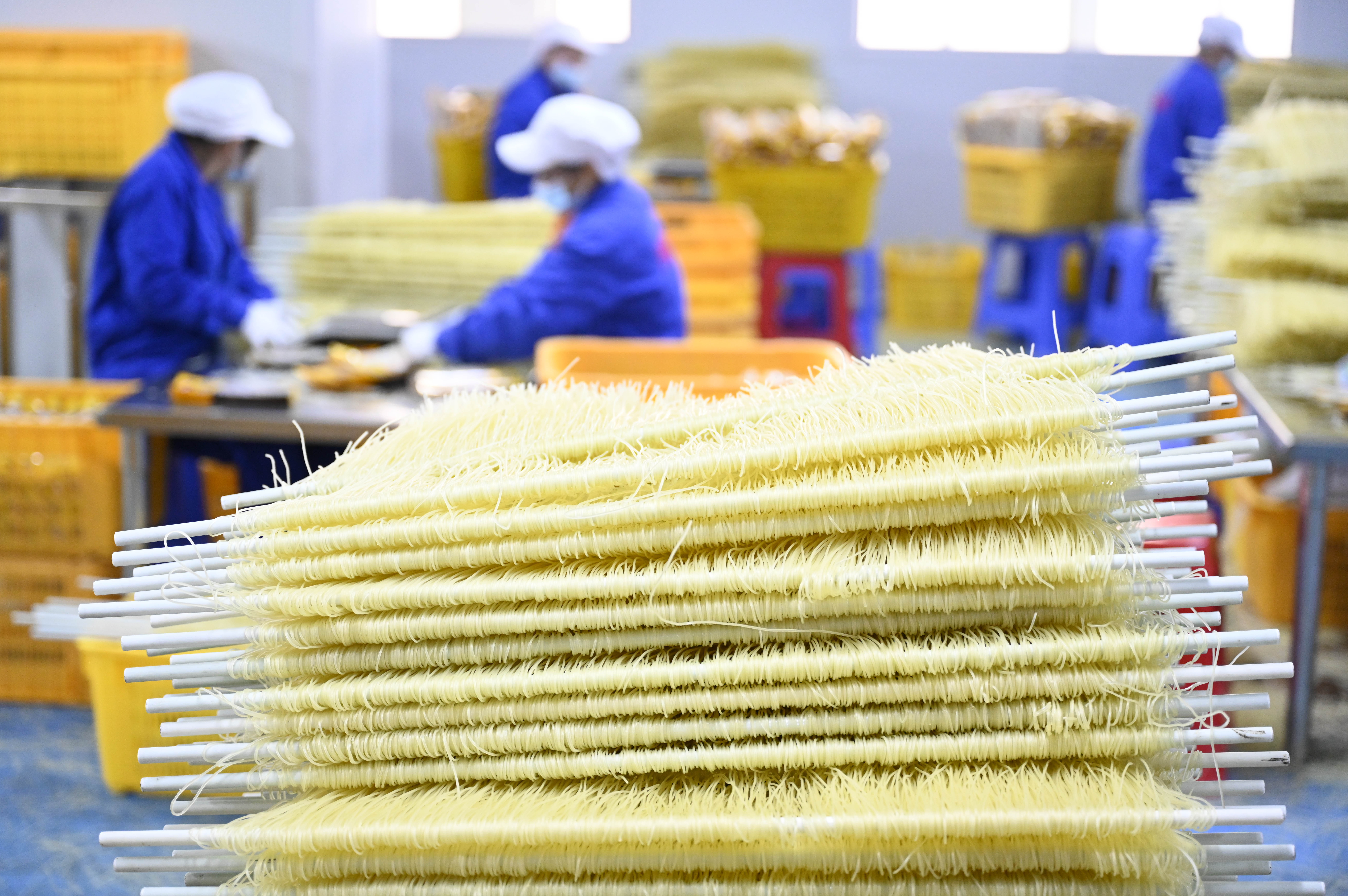 工人在米粉车间里忙碌(新华社发 黎寒池 摄)