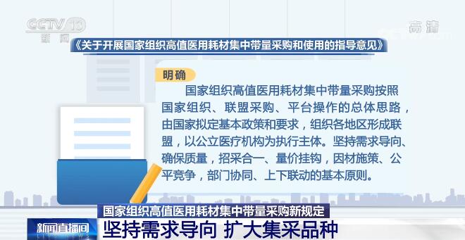 《指导意见》明确,国家组织高值医用耗材集中带量采购按照国家组织、联盟采购、平台操作的总体思路,由国家拟定基本政策和要求,组织各地区形成联盟,以公立医疗机构为执行主体。坚持需求导向、确保质量,招采合一、量价挂钩,因材施策、公平竞争,部门协同、上下联动的基本原则。