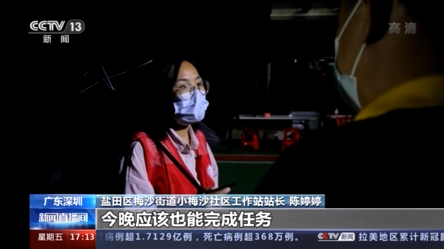 深圳市盐田区小梅沙社区工作站站长 陈婷婷:现在东海丽景70多个人,我们正在排查,今晚应该也能完成任务。