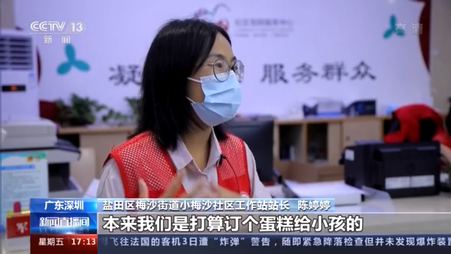 深圳市盐田区小梅沙社区工作站站长 陈婷婷:本来我们是打算订个蛋糕给小孩的,我老公今天跟我说,他连订蛋糕的时间都没有。这几天我们住在办公室的时候,他(孩子)基本上就一个人,他都理解。我们所有工作人员,都是没有一句怨言的,我尽可能多做一点,多服务居民一点。