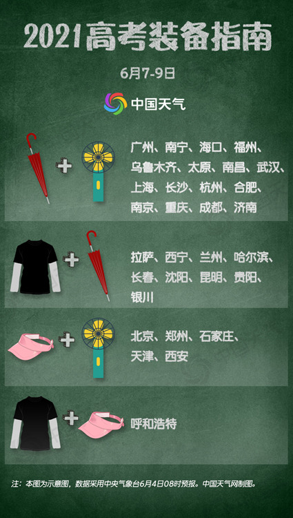 2021年高考大幕即将开启。高考期间将会遇到什么天气?快收下这份2021高考天气地图,来看看你的赶考路上会不会遇到下雨或高温,提前做好准备,还有高考装备指南助你一臂之力。