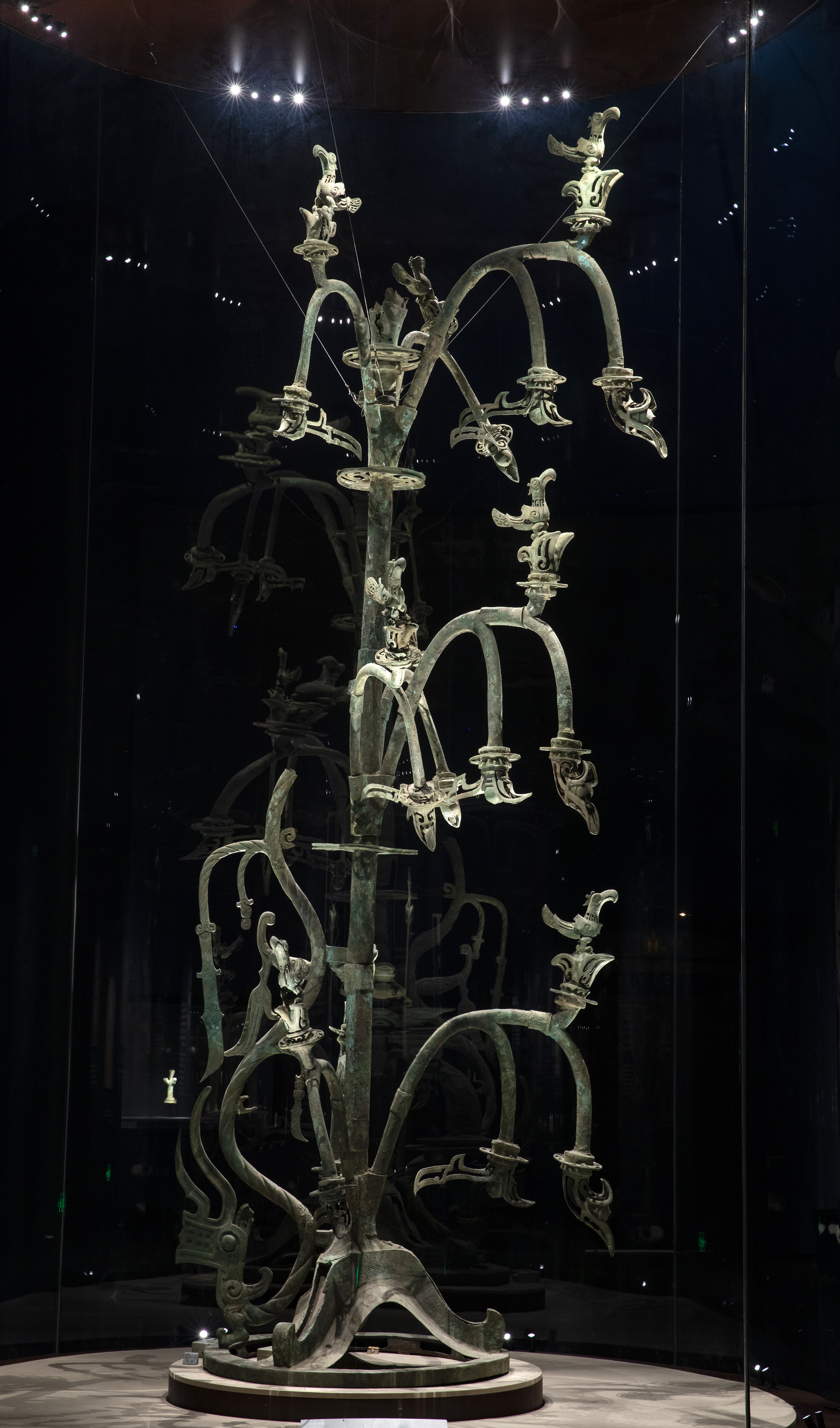 这是2021年3月17日在三星堆博物馆拍摄的1986年出土于三星堆2号“祭祀坑”的青铜神树。新华社记者 沈伯韩 摄